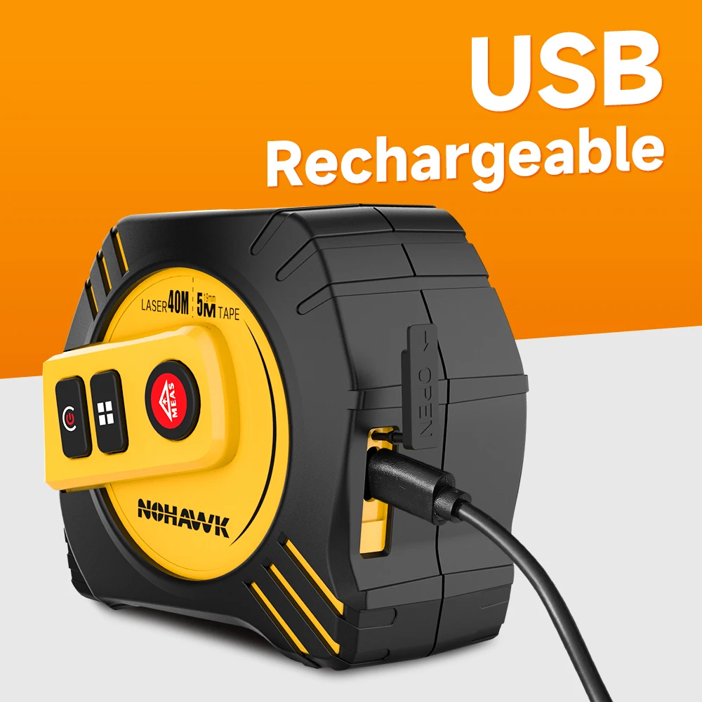 NOHAWK 40m/80m 2 in 1 Laser Tape Measure Laser Measuring Tool 16 ft Measuring Tape LCD Display Self-Locking Measuring Pythagorean, Area, Volume for Interior Designer